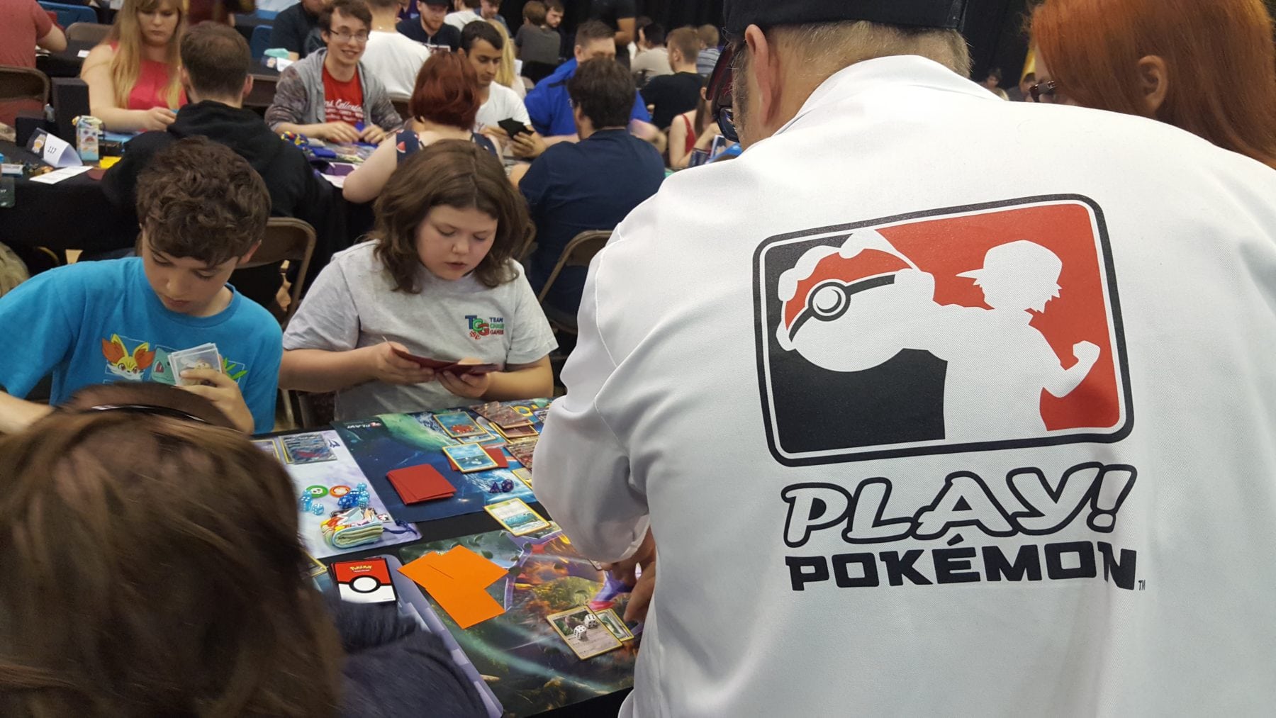 Regularly announcements were made instructing players of all genders and ages, from across the globe, of times of play and special matches currently taking place. If you were involved in this event your name was recorded and you were in play. If you were on the floor in a match, you where under the ever helpful gaze of the many helpers in Pokémon branded labcoats, who were ready to rush over when an arm was in the air. The room was packed to the gills yet it was a well oiled Pokémon machine, thanks to the organisational skills of those in-charge over the weekend.