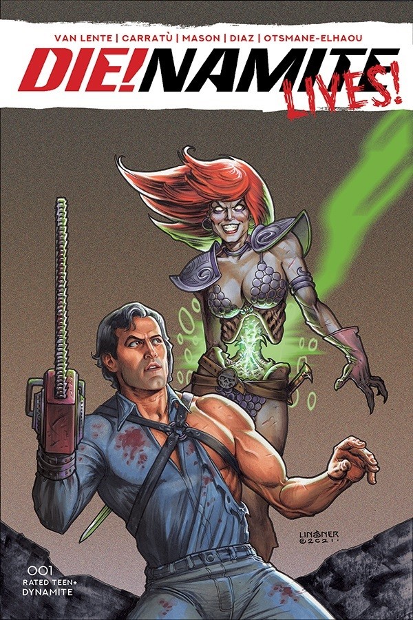 Dynamite has announced that its apocalyptic crossover saga rises from the grave this summer with a groovy guest star as Evil Dead hero Ash joins the fun for the second chapter in Die!namite Lives!.