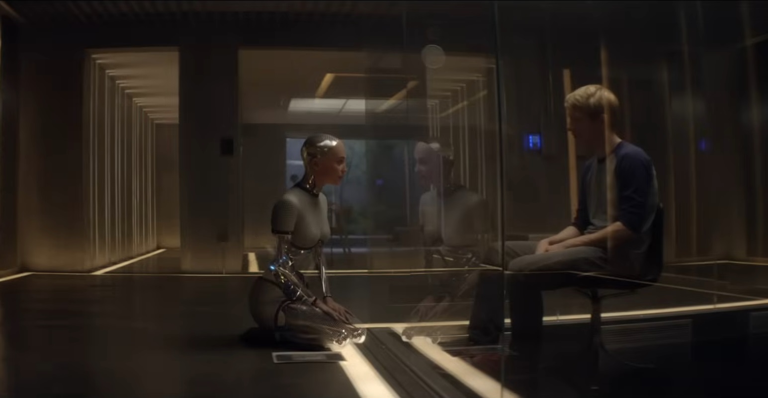 When one analyzes the etymology of the character’s names their meanings reveal a lot about the character’s themselves. Ava, or Eve, comes from the root words kháy, meaning “alive,” or khavá, meaning “to experience,” living and experiencing is Ava’s main goal. Nathan comes from the Hebrew word for natán, meaning “gave,” as he gave Artificial Intelligence or AI to humans and life to Ava. And regardless of if you prescribe to Caleb meaning either “whole-hearted” or “dog,” from the root word kéleb, it obviously refers to Caleb’s loyalty throughout the movie. Even the brand of beer – Keikaku – which Nathan and Caleb imbibe at the very outset has an interesting meaning in Japanese; it means ‘plan’.