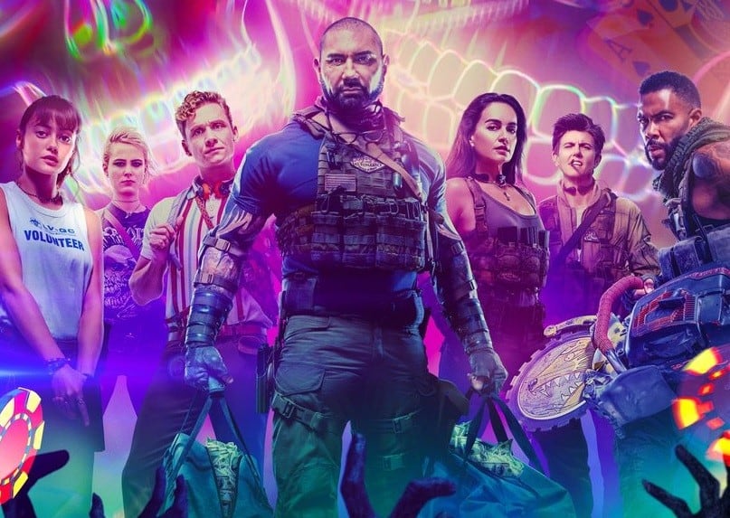 ARMY OF THE DEAD takes place following a zombie outbreak that has left Las Vegas in ruins and walled off from the rest of the world. When Scott Ward (Dave Bautista), a displaced Vegas local, former zombie war hero who’s now flipping burgers on the outskirts of the town he now calls home, is approached by casino boss Bly Tanaka (Hiroyuki Sanada), it’s with the ultimate proposition: Break into the zombie-infested quarantine zone to retrieve $200 million sitting in a vault beneath the strip before the city is nuked by the government in 32 hours. Driven by the hope that the payoff could help pave the way to a reconciliation with his estranged daughter Kate (Ella Purnell), Ward takes on the challenge, assembling a ragtag team of experts for the heist.