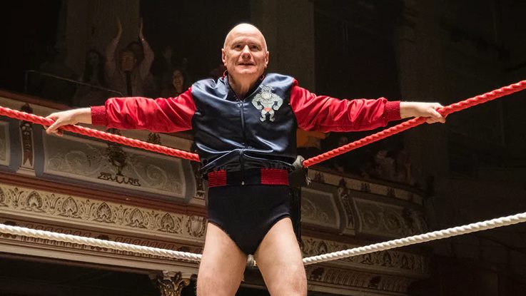 What I did was I read a book ages ago, before this film, called ‘The Wrestling’ [by Simon Garfield], which is about the old school wrestling with Mick McManus and Les Kellett and Adrian Street, so that brought back the nostalgia of it. I also love the film The Wrestler with Mickey Rourke. I thought that was so involving, about a guy who, like in any profession, was once a big, big, big entity and is slowly going down the ranks, but can’t give up because it has been his life. There are all of those scenes where he’s at the signings and there’s hardly anybody there. He keeps on going even though it’s ill for his health.