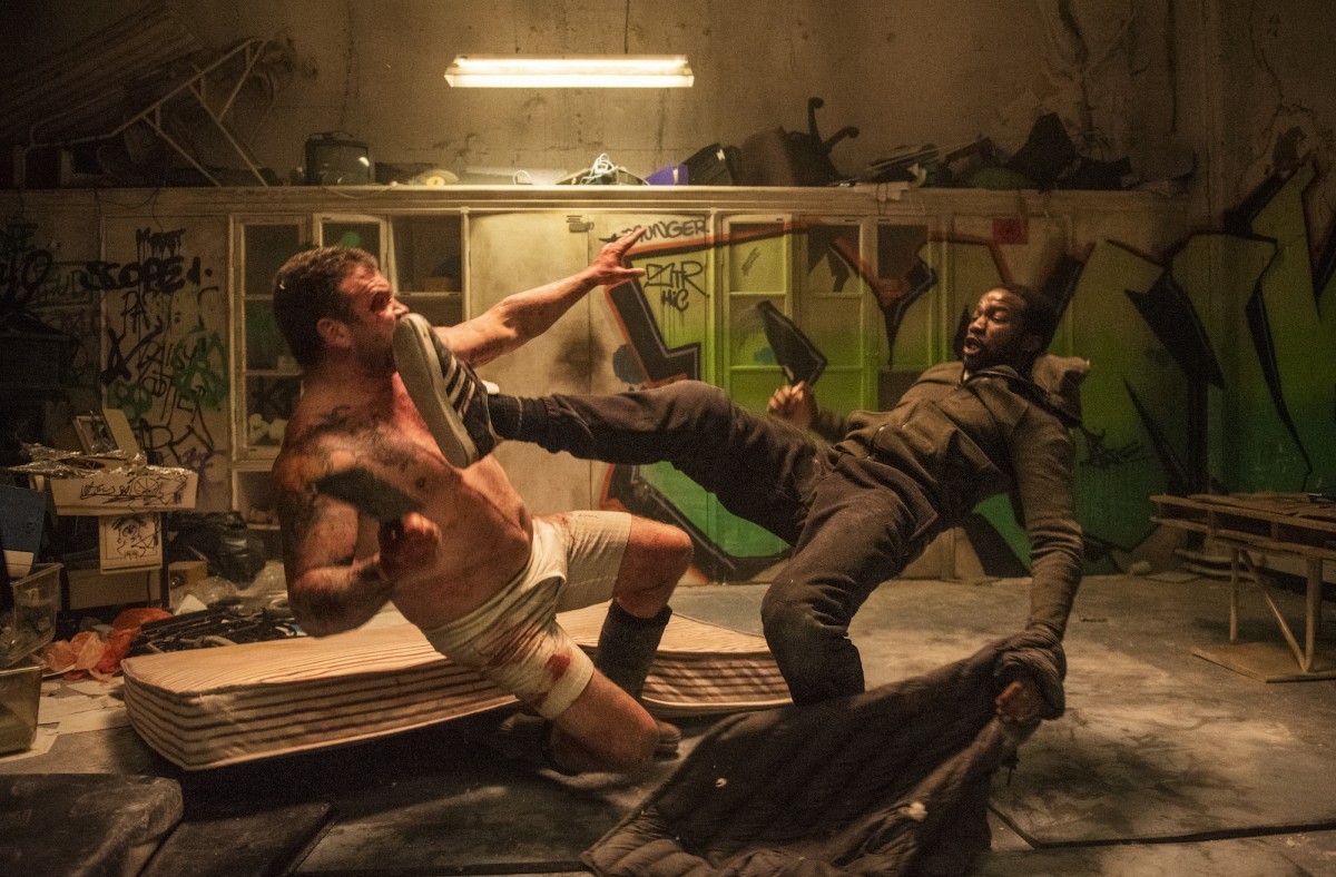 In another moment, one guy grabs Elliot (Sope Dirisu) by the jacket and, at the same time, another guy grabs him by the leg and he simultaneously knees the guy on the floor and then kicks out the legs of the guy behind him. That was a riff on Dragons Forever. I also really respond to the Hong Kong style body stunts, with those falls and impacts. As an audience member, it gets more of a reaction than a 100ft fall.