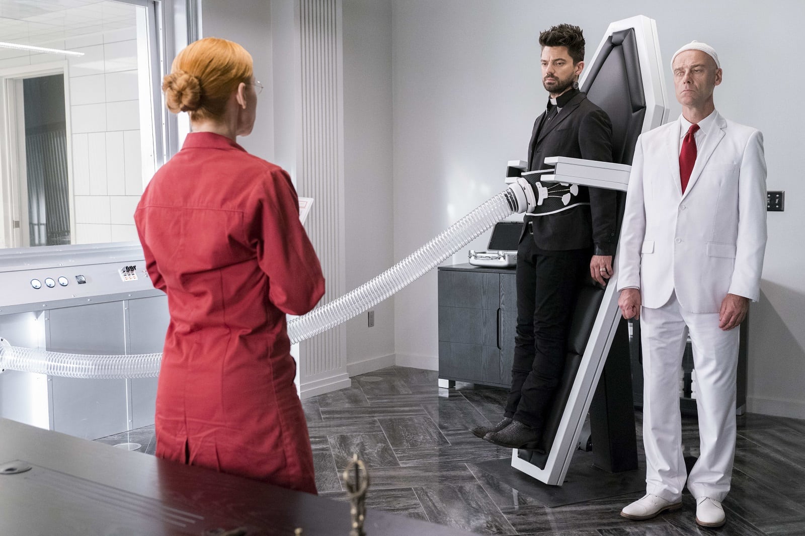 Dominic is just fantastic. He has taken this larger than life comic book character and made him so deeply human, relatable and real. I love that about all the actors in Preacher. They have all these wacky, bizarre characters and all of them are so grounded in such a sense of reality nonetheless. Dominic was really lovely to me from the very first moment we met. He made a point of finding me, introducing himself, and welcoming me to the show. After we did the first stumble-through of our first scene together for blocking purposes, and everyone heard this unexpected German accent come out of my mouth which they weren’t expecting (since it wasn’t in the script), he came right over to me and said something to me like: Love, that’s fantastic, really funny. This is going to be an awesome scene, I’m really excited about it. He is incredibly focused, disciplined, and committed to doing the best work possible. What a pleasure and delight to work with him.