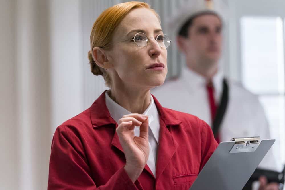 Well, the role was originally written for a man: “Louis Slotnick,” but for whatever reasons, they didn’t find the guy they liked and started auditioning women for the role as well. The breakdown for the character basically said she was a passionate and excited scientist, with no mention of any accent or nationality, so I did a self-taped audition corresponding to that. But it just felt to me like the character wasn’t really American. She just felt more foreign, the way her lines were written, I don’t know why. I just had this weird urge to do it in a German accent. So, I did a take where I made her this creepy German scientist lady, just to get it out of my system. But, it was just so interesting and compelling that I decided to take a risk and send it along to casting, with the other take, just for fun. Then later that week we heard back from the Casting Director, Ryan Glorioso, that they actually really liked the German accent… and I got cast. Such a great reminder of how important it is to trust one’s instincts. Once I got on set, I spoke a bunch with Mary Laws, who was the main writer for the episode where my character first appears. I shared with her some ideas I had about Dr. Slotnick, some details of her past and who she is today. Mary was completely on board, and we incorporated it all. Then, it was director Wayne Yip who found the glasses I ended up wearing, which really helped hone the character, as props and wardrobe often can. It was also Wayne who helped me lean the Dr. Slotnick into a more dark and evil place as opposed to passionate and excited as it was written.