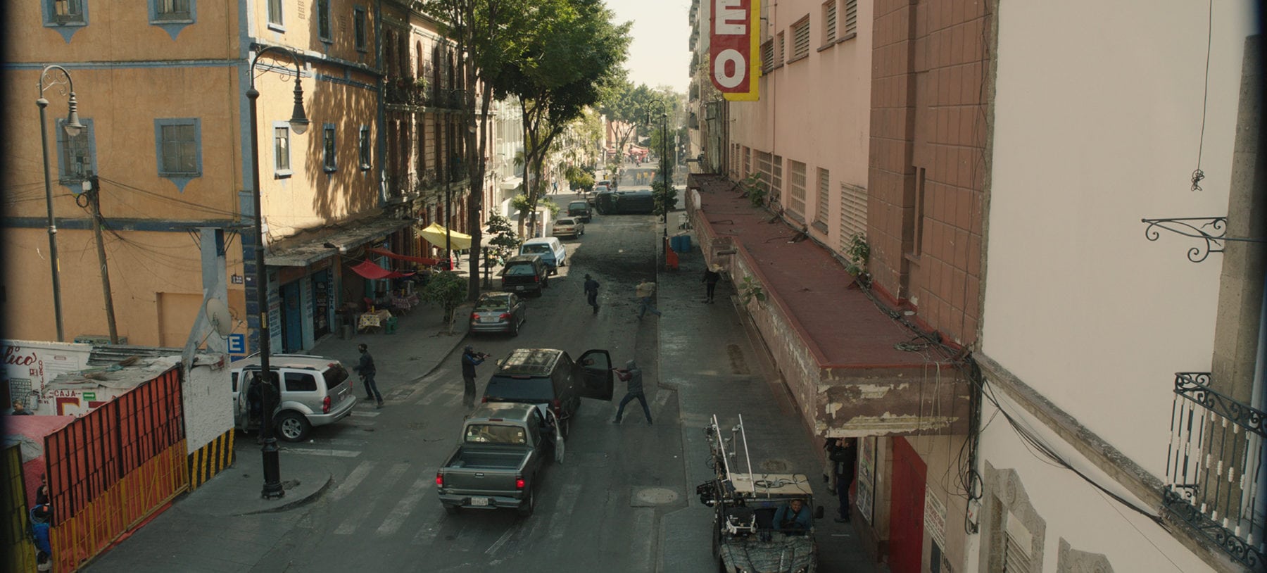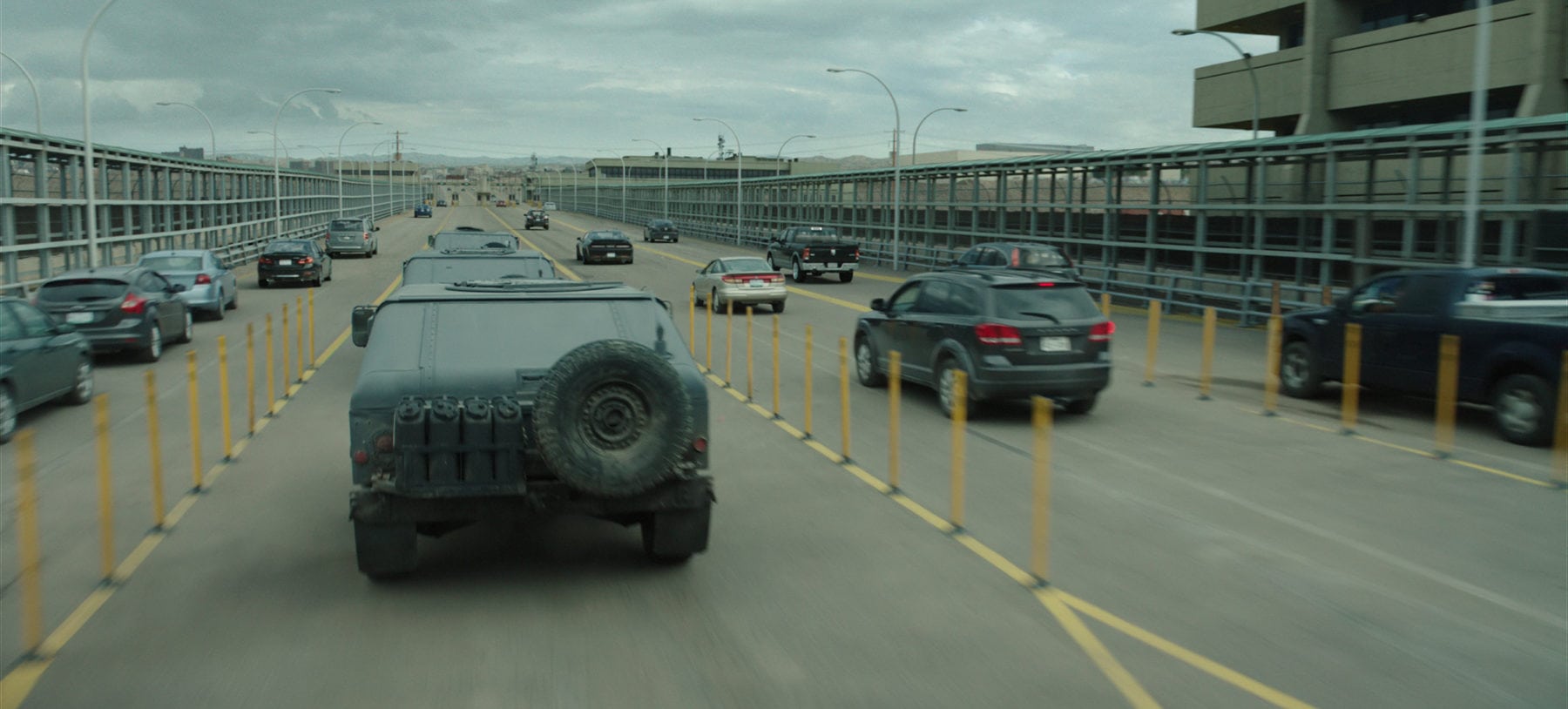 ALL of them! That’s what we were mandated to do. It was all about creating invisible visual effects on the movie to enhance its gritty, war genre feel and make it more immersive. For instance, just like in the original Sicario, there’s a scene where a convoy crosses the US-Mexican border. We had to populate the scene by adding CG civil and military vehicles. We also had to extend the physical elements of the set by adding buildings, surveillance settings, lights and fences, making the exterior location bigger, but also tenser and claustrophobic. In the end, you can’t tell what’s real and what’s not!
