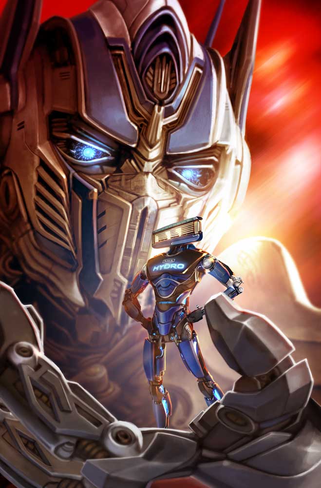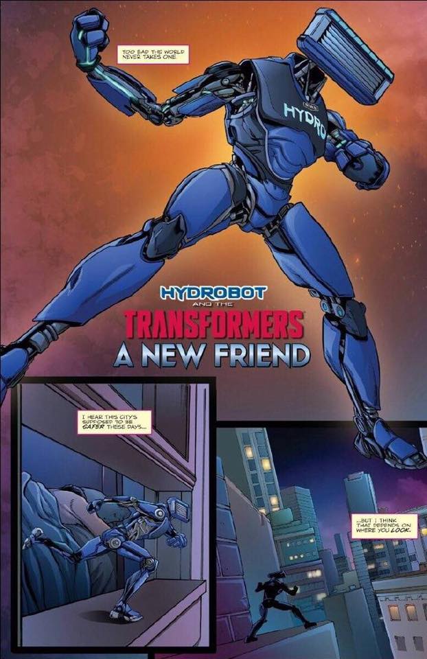 “Schick’s Hydrobot makes his debut in a one-of-a-kind comic book, featuring a new Transformers storyline, which unveils Hydrobot’s origin alongside fan-favorite characters Optimus Prime, Bumblebee, Hound, and Megatron!”
