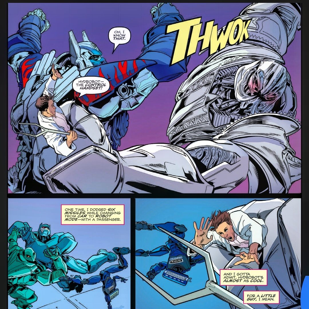 SK: The fact that the giant robots we love in a comic book are actually moving and doing things. While it’s not animation, it’s fun and amped up beyond the normal comic book – a comic book where you can actually see Hydrobot, a Transformer, change from an everyday object into a superhero!