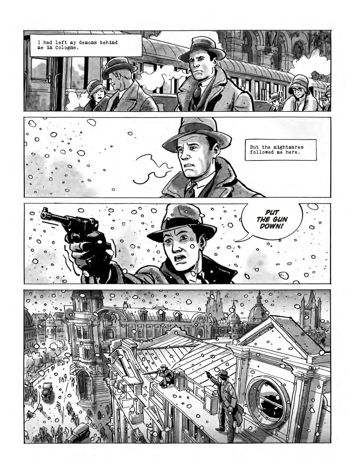 Coinciding with the release of the highly-anticipated TV series Babylon Berlin, coming to Netflix on the 30th January 2018, Titan Comics will be publishing a graphic novel adaptation of the book that inspired the TV show, with Arne Jysch (Wave and Smile) on both writing and artistic duties. Below you can we have an exclusive look at the trailer and pages for the upcoming Babylon Berlin graphic novel…