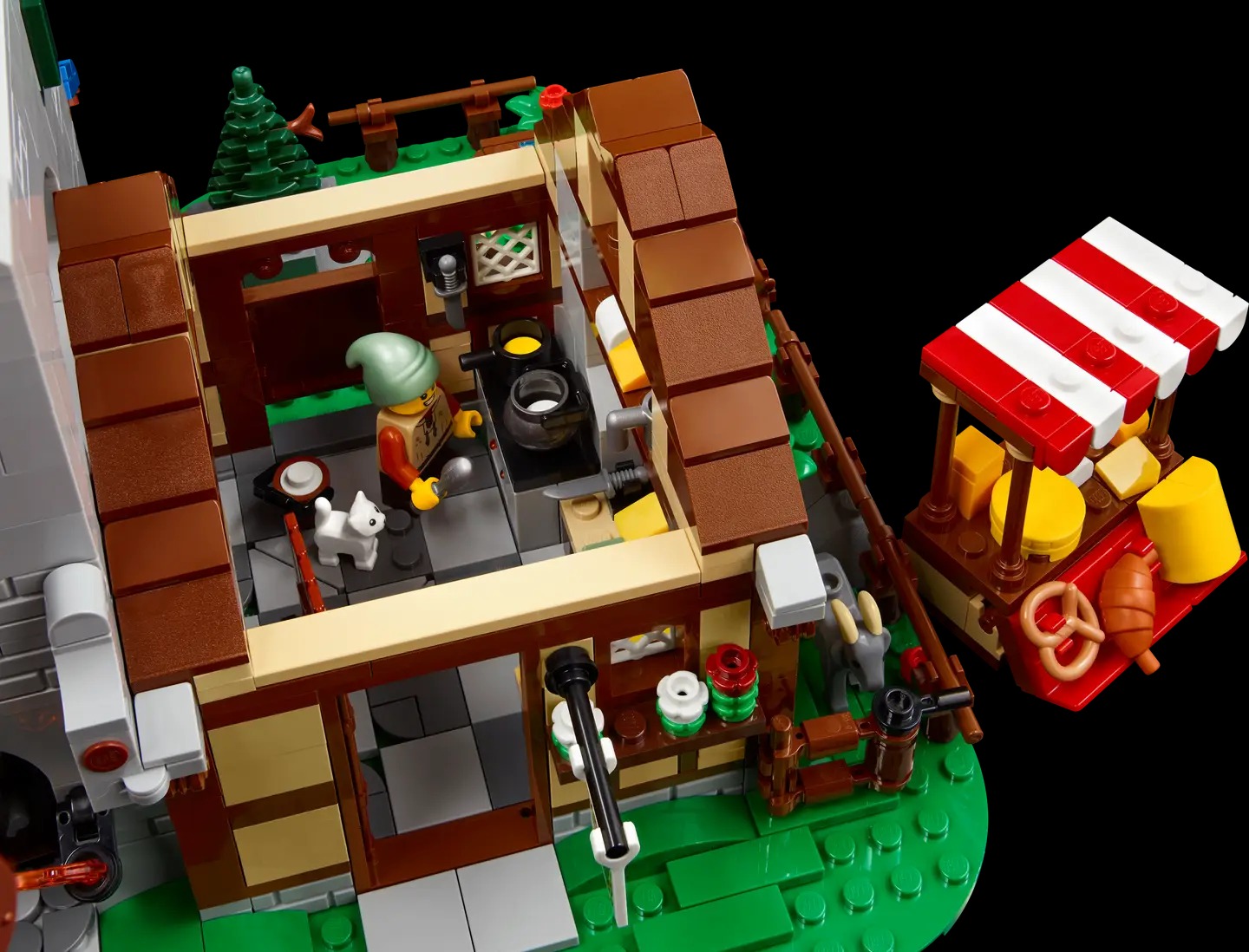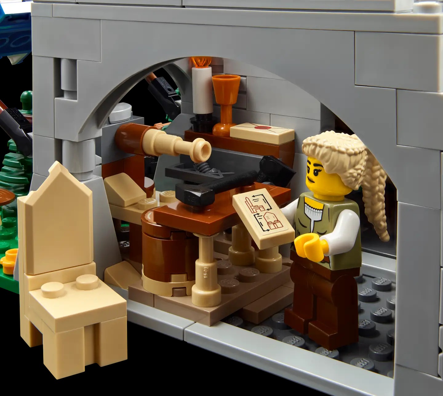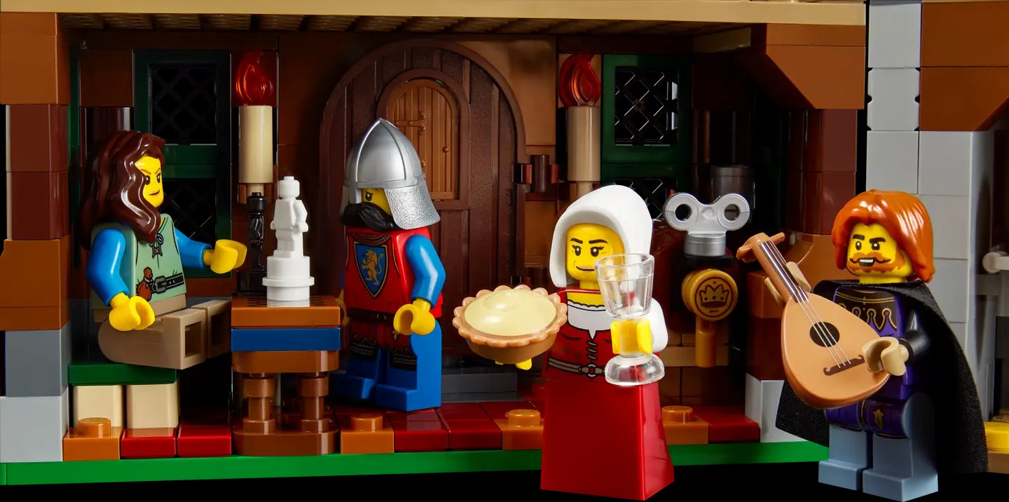 - Features and functions – This LEGO® Icons set is packed with fun details, including a crane in the carpentry workshop and a secret compartment in the guest room of the Broken Axes Inn