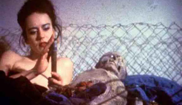 But is it any good? Because, as we all know, when a film comes to the public’s attention with a built-in reputation for being a transgressive masterpiece then more often than not it turns out to be complete twaddle. Well, in its favour Nekromantik does deliver on its promises and lives up to its reputation with a final scene that goes against anything you were ever taught in sex education, but getting to that point isn’t quite the joyride you would hope. There are grisly murders, some animal cruelty and weird, surreal sex scenes to help you on your way but these just feel like mere tasters for the final meal that were put in just to give you something grim to look at before you press the skip button to get to the end. Don’t get me wrong – Nekromantik is beautifully put together and, despite being one of the grungiest films you’re ever likely to see (if you watch the 35mm print), it does have a unique style and quality to it that a few more so-called ‘nasties’ could have done with employing. But if you’re just curious to see what all of the fuss is about then it’s likely that the first hour of the film won’t hold a lot of interest other than the odd shot of a decomposing body being used as a sex toy.