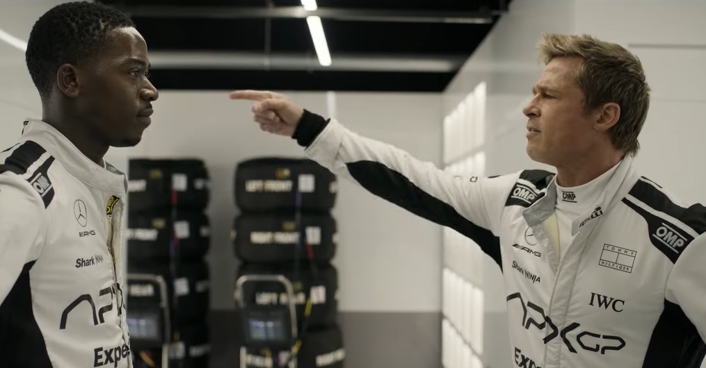 Having suffered some nasty injuries and then destroyed his reputation through gambling scandals, Sonny Hayes still professionally races, even if he doesn’t know the answer to what it’s all about for him. It’s certainly not about teamwork, as he somewhat jokingly and calmly threatens another driver not to lose his lead before taking his break during a 24-hour course. There is also a sense that he isn’t overly concerned about money or material possessions. And when he finds himself reunited with Ruben to join his failing F1 team as a driver and potentially save the program from being cut by financial investor Banning (Tobias Menzies), it becomes clear that Sonny doesn’t care about fame or social media clout, put off by his younger partner Joshua Pearce’s (Damson Idris) showboating.