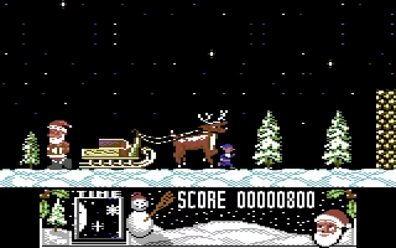 Jolly old Santa has to repair his sleigh while the obnoxious elves risk getting fired or put on zero hours contracts. C64 version.