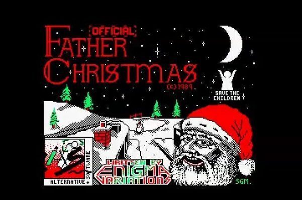 The Amstrad CPC title screen for The Official Father Christmas shows a Santa with the look of a slightly sozzled bloke pulled over for drinking and driving.