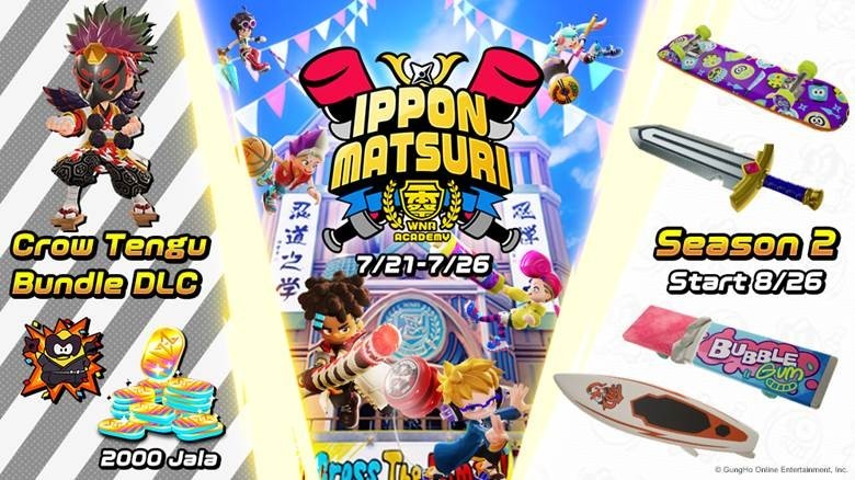 GungHo Online Entertainment has released the Crow Tengu DLC Bundle for their online Ninja-Gum action game, Ninjala.  This is the first DLC released for their ninja fighting title where players take control of a cast of colourful ninjas across dynamic environments.  The Ippon Matsuri festival is also underway and runs until 26th July.  Watch the new developer diary video below to see what’s coming in Season 2.