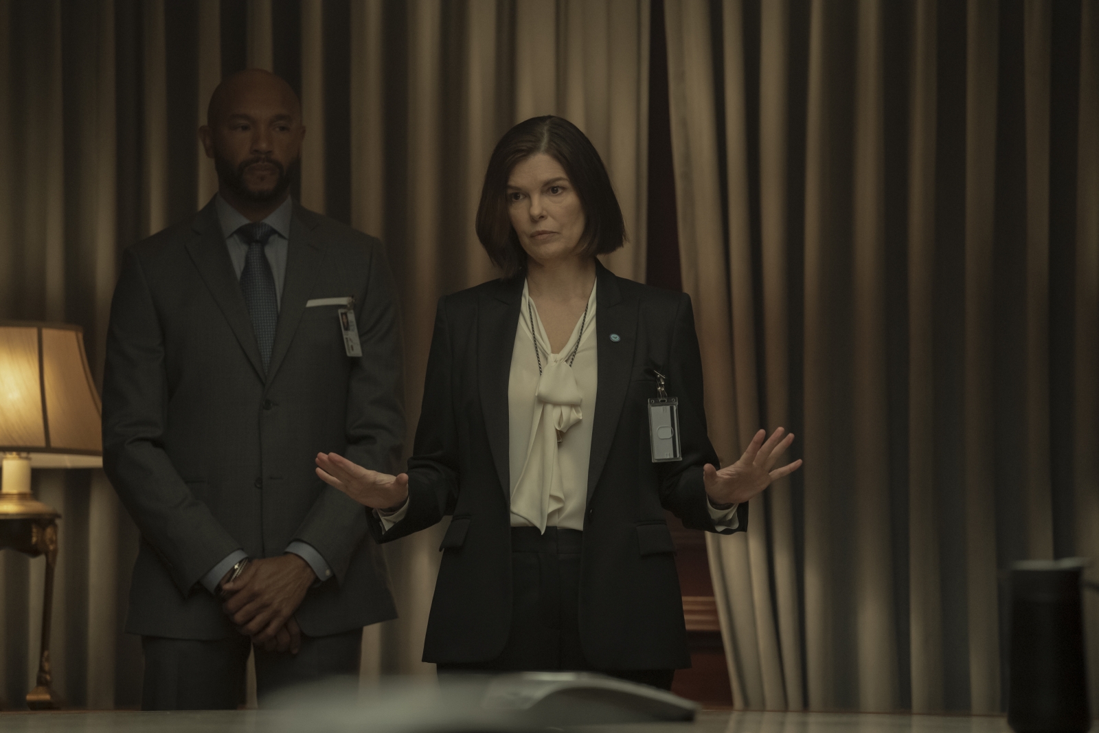 The Terminal List features a cast that includes Chris Pratt, Constance Wu, Taylor Kitsch, Jeanne Tripplehorn, Riley Keough, Arlo Mertz, Jai Courtney, JD Pardo, Patrick Schwarzenegger, LaMonica Garrett, Stephen Bishop, Sean Gunn, Tyner Rushing, Jared Shaw, Christina Vidal, Nick Chinlund, Matthew Rauch, Warren Kole, and Alexis Louder.