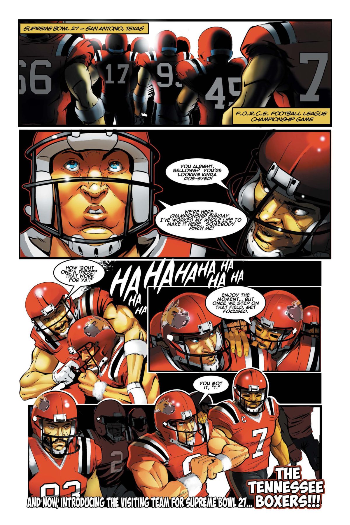Terrance Wright, the starting quarterback for the Tennessee Boxers, is at the tail end of his career. Hoping for one last big payday, he’s doing all he can to lead his team to victory at Supreme Bowl XXVII.