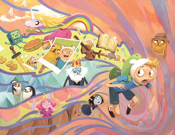 Finn breaks a promise he can’t remember making which leads to a confrontation with Chronologius Rex, the lord of Hours and All Time! Ted Anderson (My Little Pony) and Marina Julia (Lumberjanes, SLAM! The Next Jam) set Finn on a journey to confront the ghosts of his past selves, the alternate selves of his present, and all his possible futures, while Jake gathers help from all of Ooo and beyond. Together, they must save Finn before he goes beyond the Vanishing Point and is erased from every reality…which would be really, really bad.