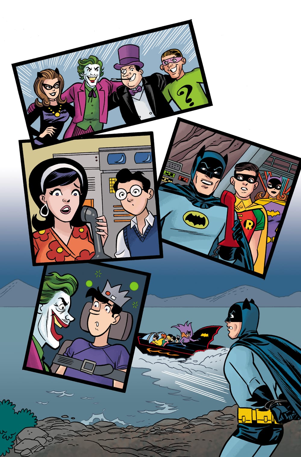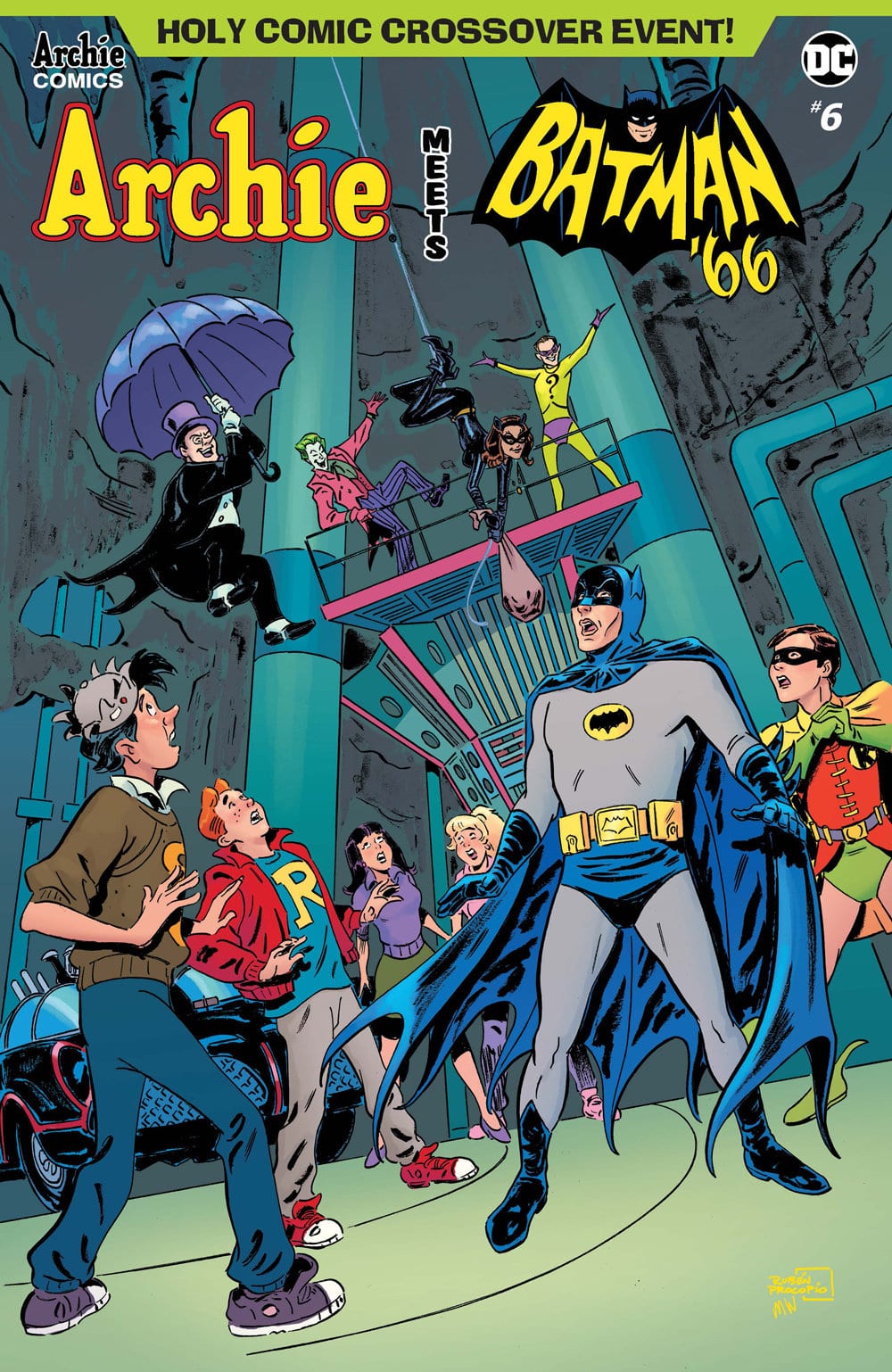 With the sixth and final issue of Archie Comics and DC Entertainment’s Archie Meets Batman ’66 crossover set for release this January, a first-look unlettered preview has arrived online which teases the climactic showdown with the Dynamic Duo and Archie and the Gang taking on the United Underworld! Take a look here…