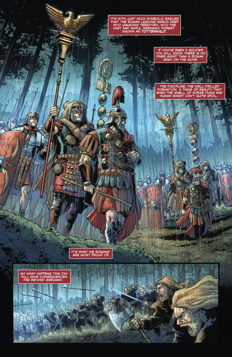 But now, in the mist-shrouded Germanic forest of Tottenwald, the unthinkable has happened: A rampaging barbarian horde has crushed three of Rome’s most highly skilled detachments in battle… and captured their mighty Roman eagles.