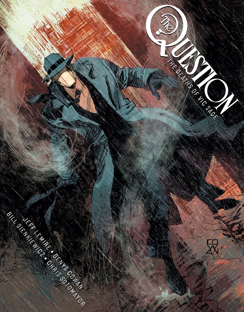 Vic Sage knows right from wrong. He knows black from white. But what happens when he is drawn into a conspiracy that reaches from the heights of Hub City power to the depths of its underground tunnels? What happens when things stop being black-and-white and start getting a little gray? And what happens when, in a secret chamber deep beneath the city, Vic Sage meets his own end…and his new beginning? Legendary artists Denys Cowan and Bill Sienkiewicz and letterer Willie Schubert return to The Question, alongside Eisner-winning writer Jeff Lemire and colorist Chris Sotomayor, to resurrect Vic Sage, only to destroy him all over again…and again…and again….