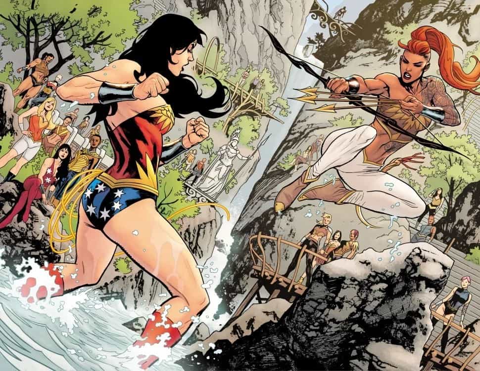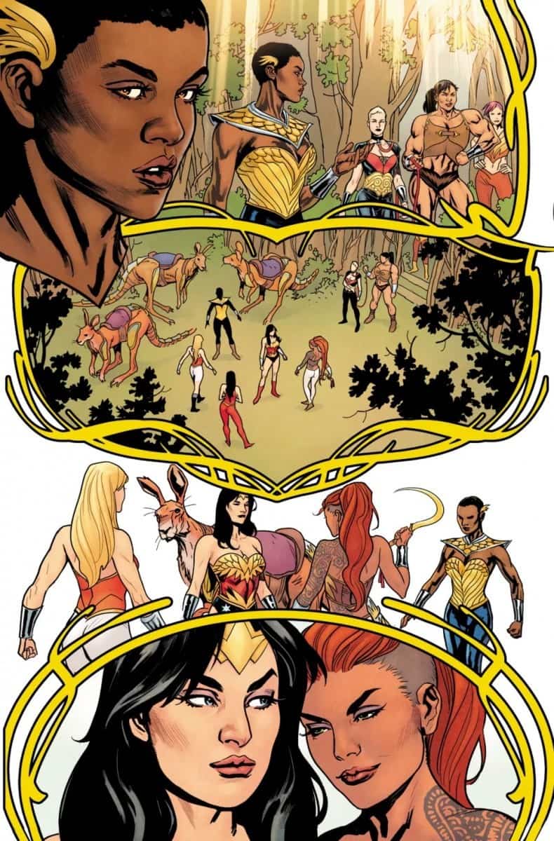 Diana, now queen of the Amazons, must assemble the disparate Amazonian tribes for the first time in a millennium. Max Lord’s assault on Paradise Island with his destructive A.R.E.S. armors is on the horizon, and in order to weather the war that is coming, Wonder Woman will need the full might of her sisters by her side! Can Diana finally bring her message of peace to Man’s World, or will Max Lord’s war burn the world and the Amazons to ashes?