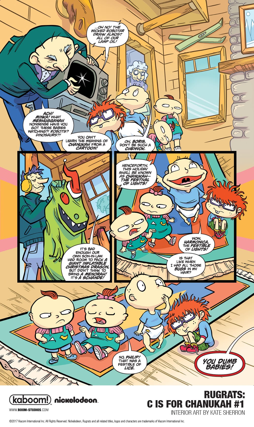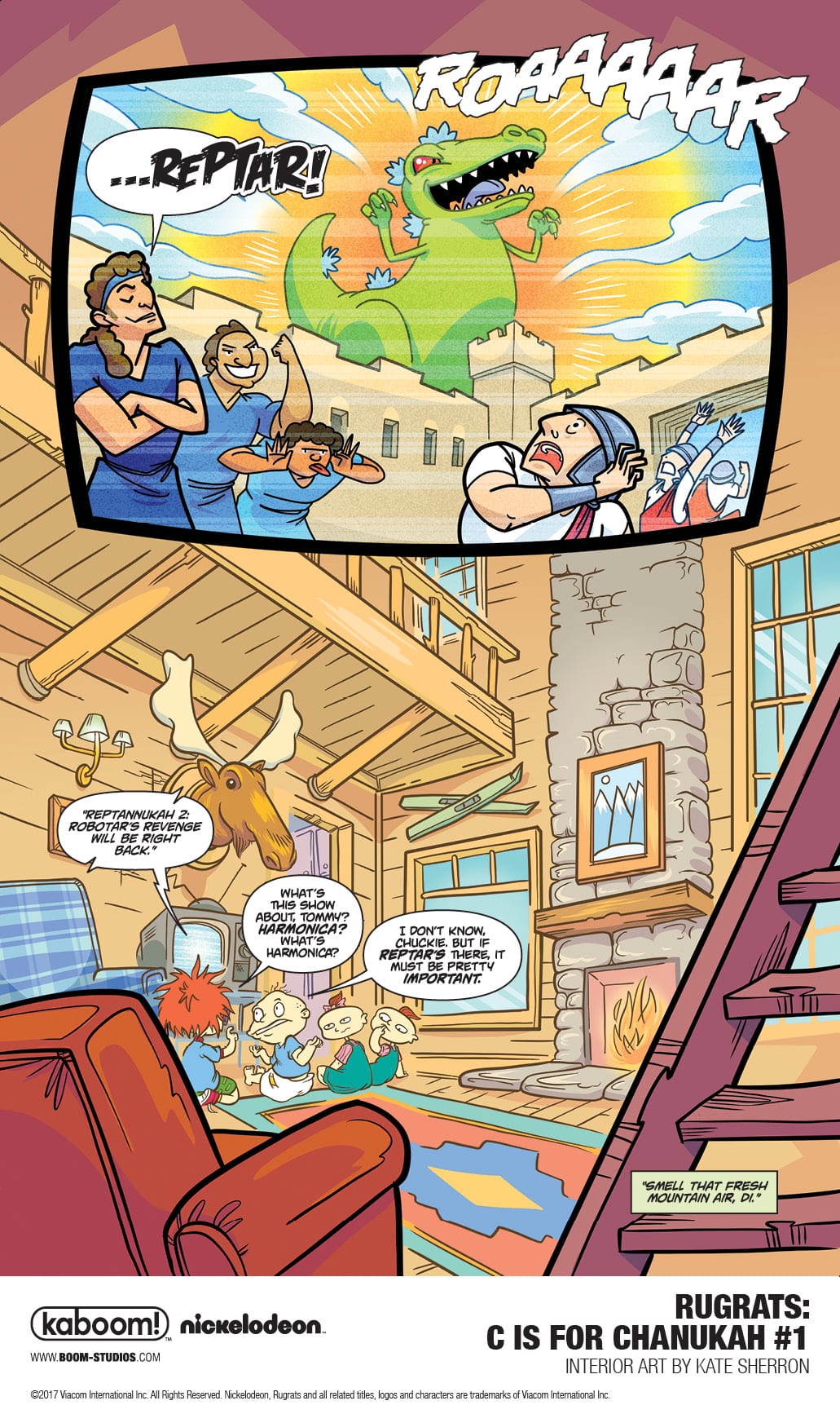 Boom! Studios has unveiled a preview of Rugrats: C is for Chanukah, an oversized one-shot from The Late Show with Stephen Colbert writing duo of Daniel Kibblesmith (Quantum & Woody) and Cullen Crawford and artist Kate Sherron (The Amazing World of Gumball). Check it out here…
