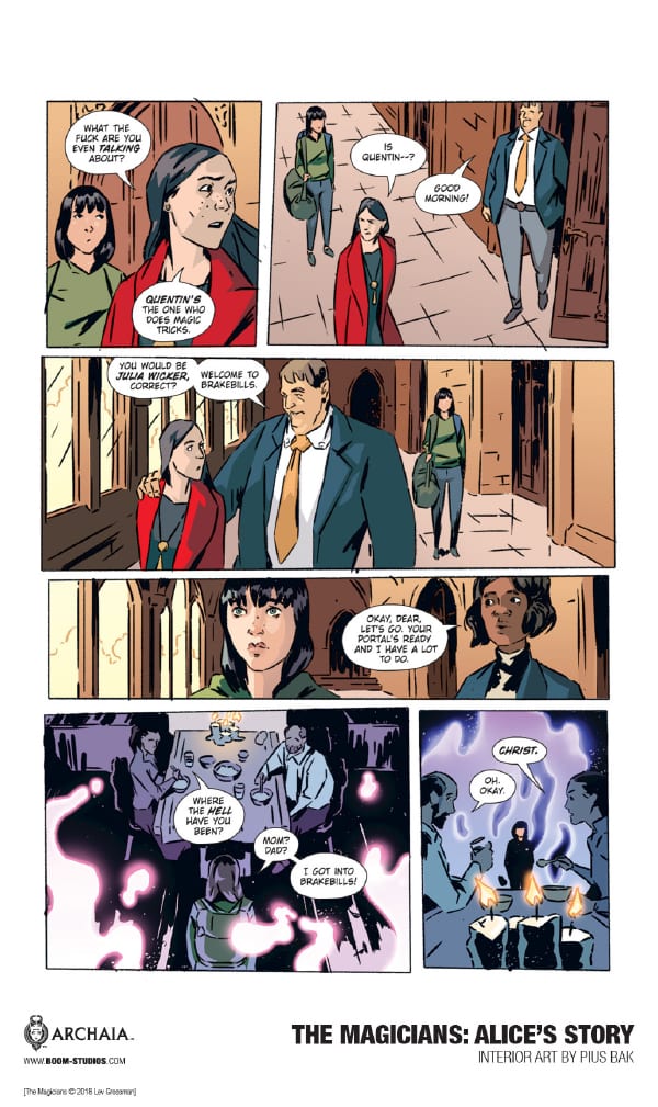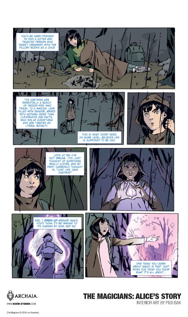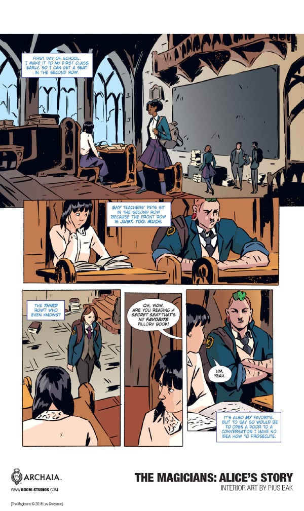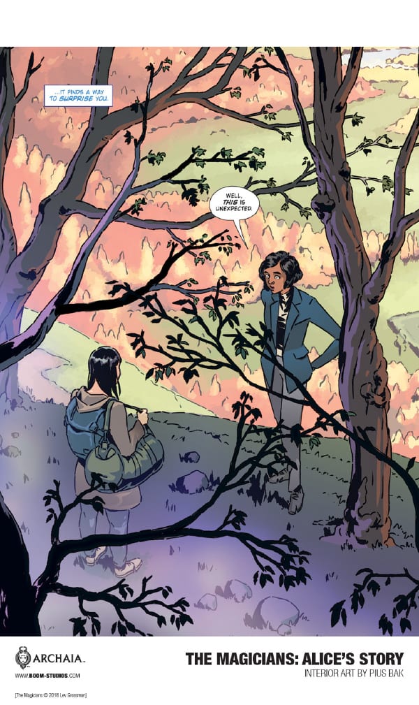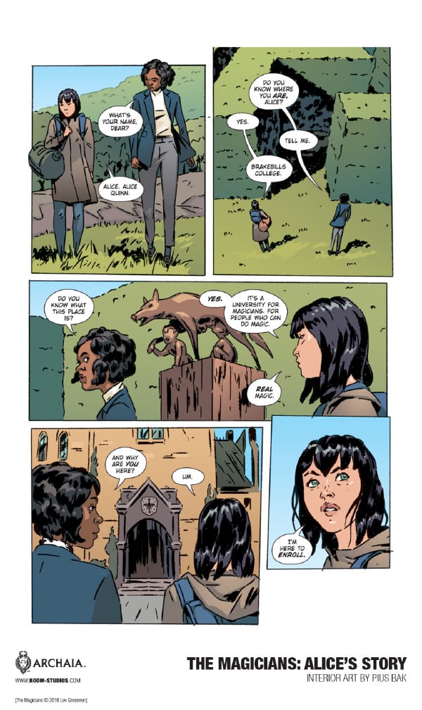 Boom! Studios has released a first-look preview of The Magicians: Alice’s Story, an all-new original graphic novel set set in the world of the acclaimed book trilogy by Lev Grossman, from writer Lilah Sturges (Lumberjanes: The Infernal Compass, Jack of Fables), rising star artist Pius Bak and featuring a cover by Steve Morris (Buffy The Vampire Slayer). Check it out here…