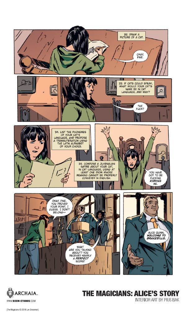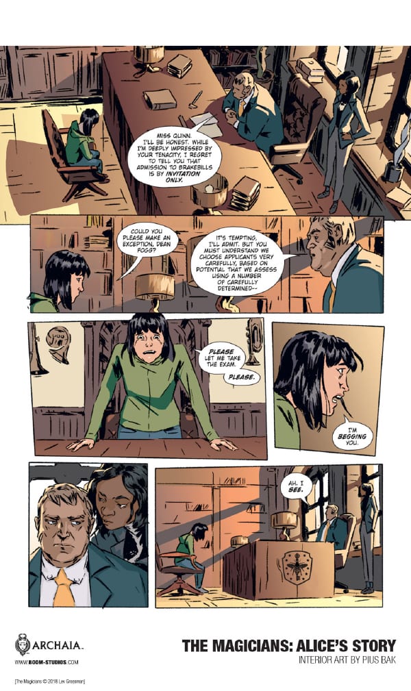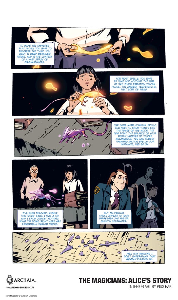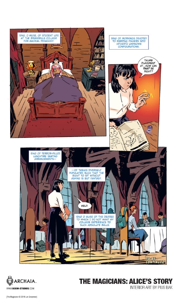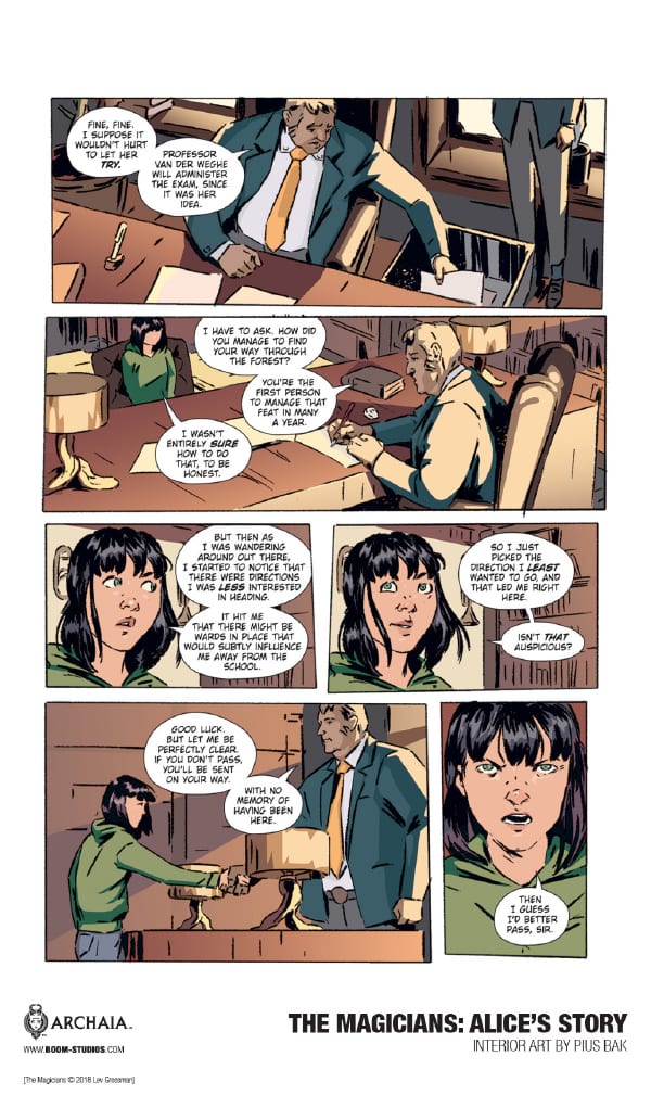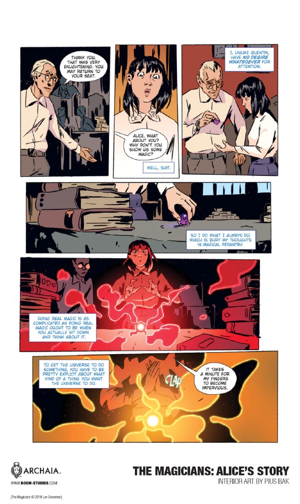 Boom! Studios has released a first-look preview of The Magicians: Alice’s Story, an all-new original graphic novel set set in the world of the acclaimed book trilogy by Lev Grossman, from writer Lilah Sturges (Lumberjanes: The Infernal Compass, Jack of Fables), rising star artist Pius Bak and featuring a cover by Steve Morris (Buffy The Vampire Slayer). Check it out here…