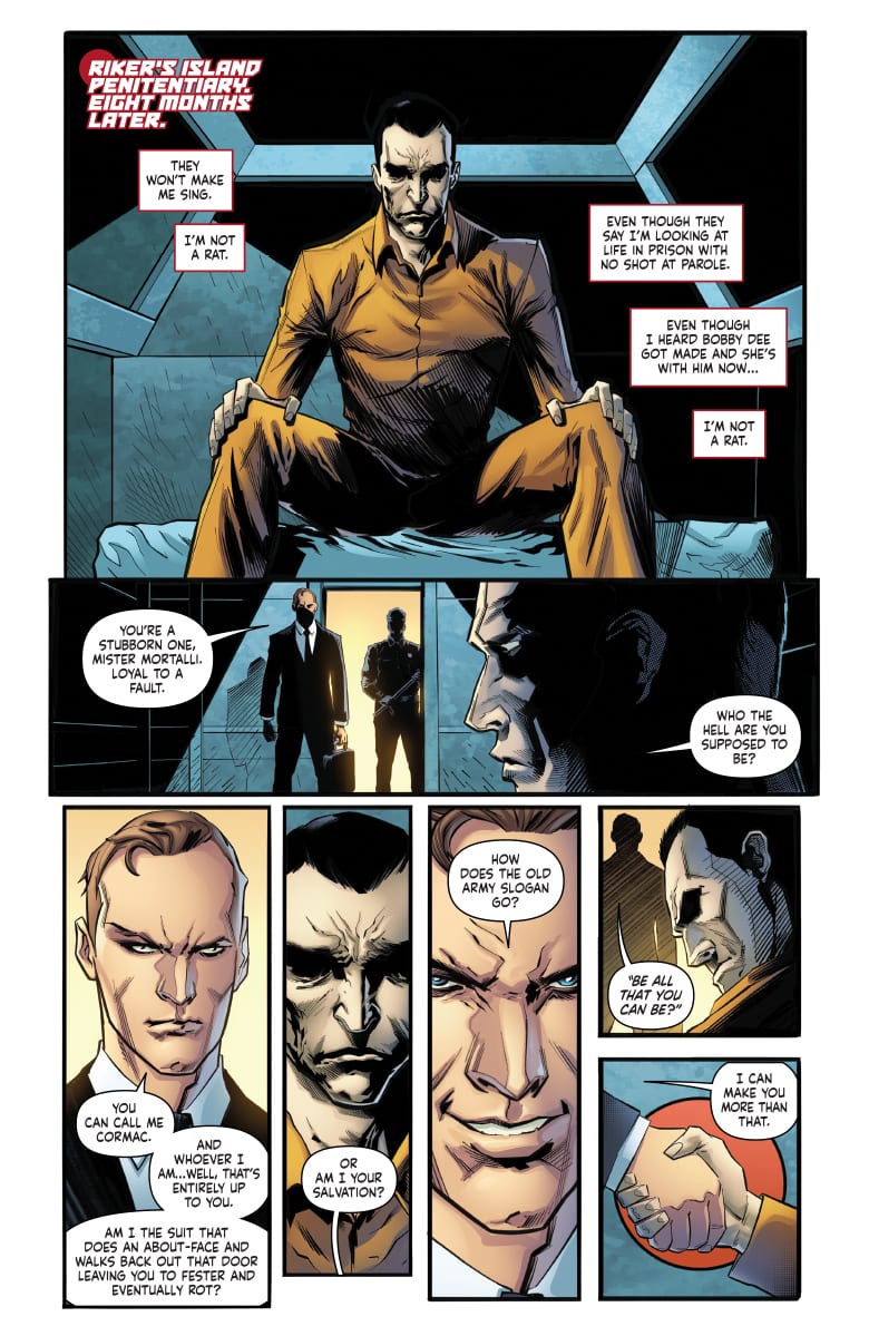 Before a weapon is deployed in battle, it must be designed, refined, field-tested. Bloodshot was no exception. In the early days of the private military contractor Project Rising Spirit, the nanite-infused super-soldier who would one day become their most violent and valuable asset was a resource to be mined – and it was up to an enterprising team of scientists to ensure he did what he was told. But a memory is a tricky thing…and the man Bloodshot used to be won’t let go of his past so easily…
