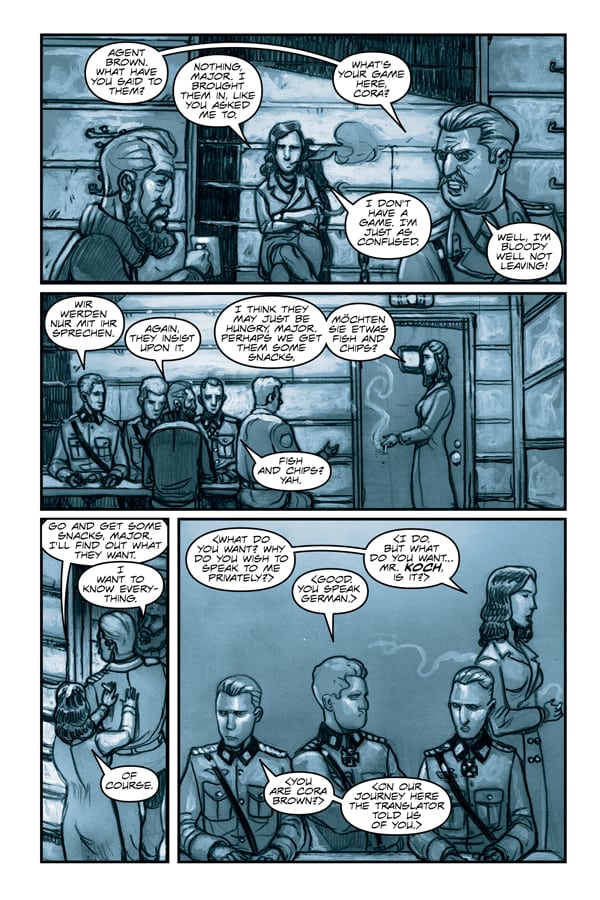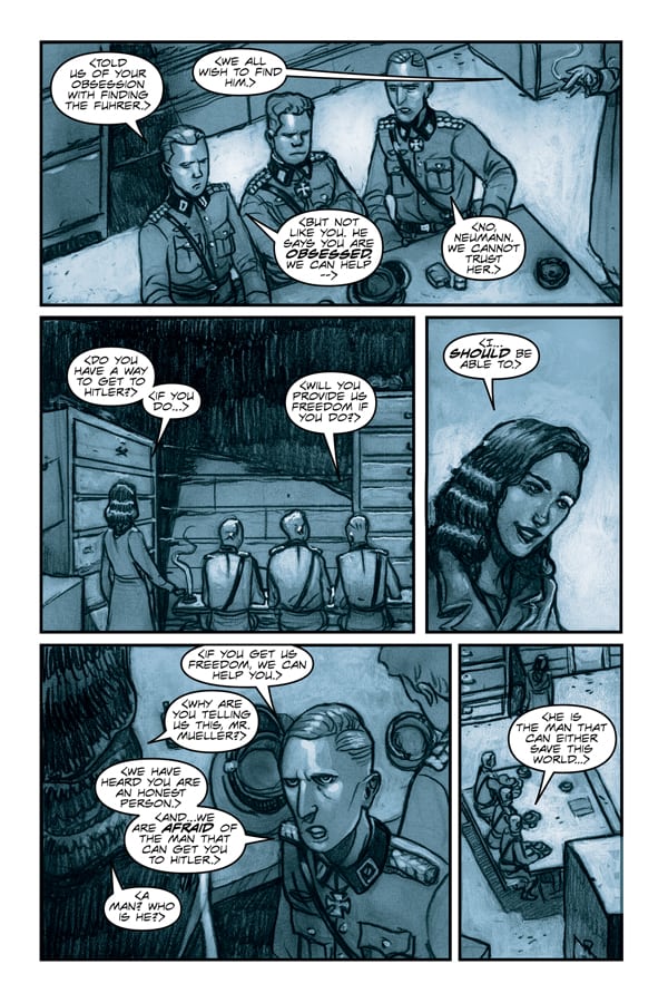 “When Geoff, Jeff, and I first started working on this project, we wanted to tell a pulpy tale of a manipulative woman on a Nazi-hunting expedition that culminates in Hitler’s bunker,” said Del Col (Kill Shakespeare, Assassin’s Creed). “But as we witnessed unfortunate world events like the Charlottesville riots—combined shortly thereafter with the moment I witnessed someone on my neighborhood street wearing a Nazi swastika—I realized we had a duty to explore the roots of what’s happening today.”