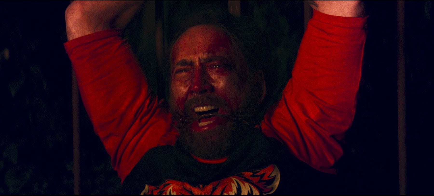 Pacific Northwest. 1983 AD. Outsiders Red Miller (Nicolas Cage) and Mandy Bloom (Andrea Riseborough) lead a loving and peaceful existence. When their pine-scented haven is savagely destroyed by a cult led by the sadistic Jeremiah Sand (Linus Roache), Red is catapulted into a phantasmagoric journey filled with bloody vengeance and laced with fire.