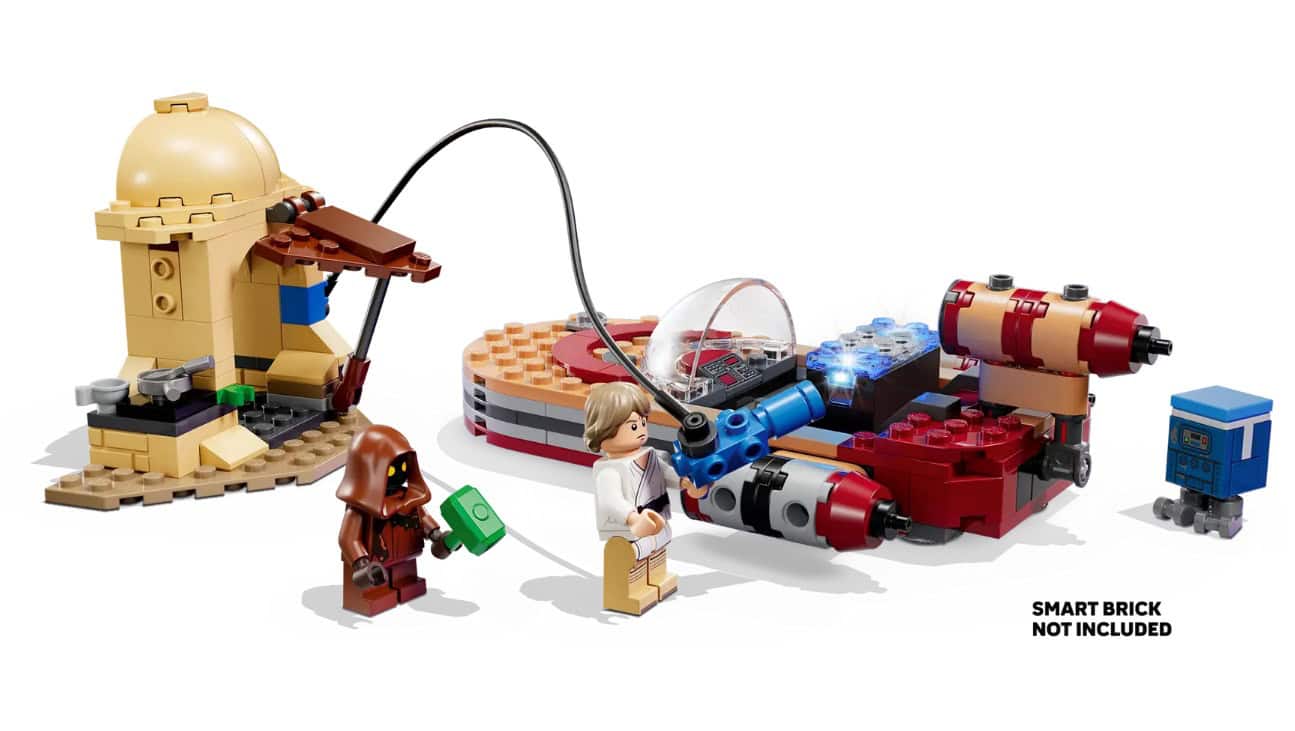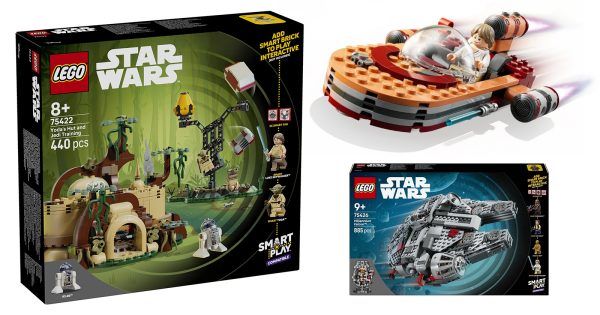 After officially unveiling the first two SMART Play sets in the LEGO Star Wars theme earlier this month, The LEGO Group has now unveiled five more sets due to hit shelves on March 1st in Luke’s Landspeeder, AT-ST Attack on Endor, Yoda’s Hut and Jedi Training, Mos Eisley Cantina, and the Millennium Falcon. Check out the promotional images and details below…