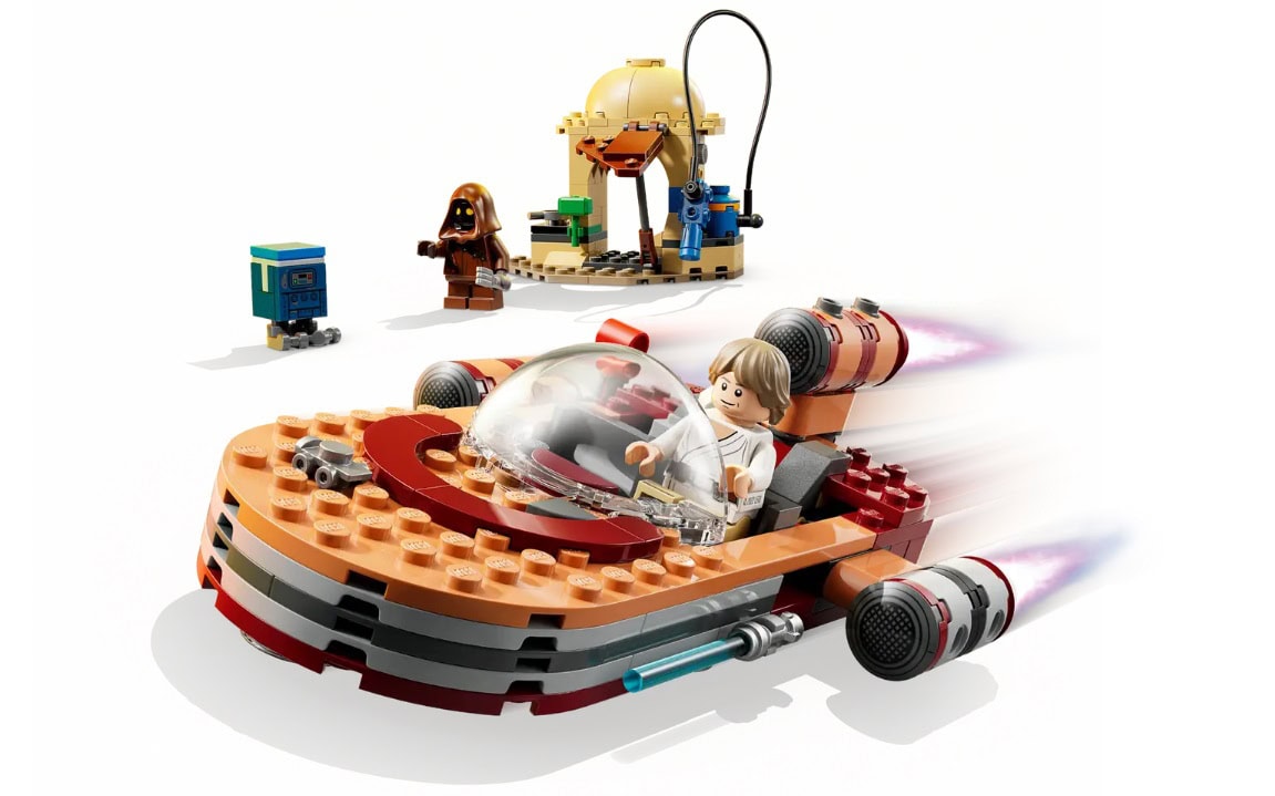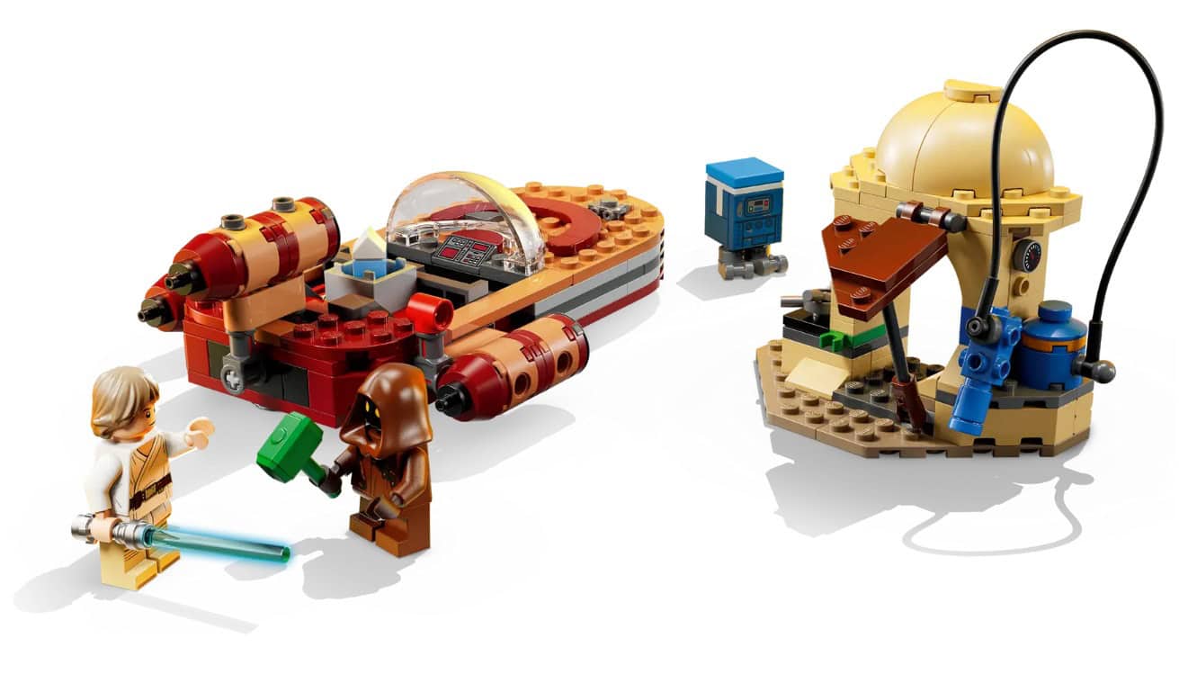 - PLAYFUL DETAILS – Clip Luke’s Lightsaber™ to the landspeeder, fold out the service station’s awning for easy access to the fuel hose and accessories, and pick up the blue milk carton from the box