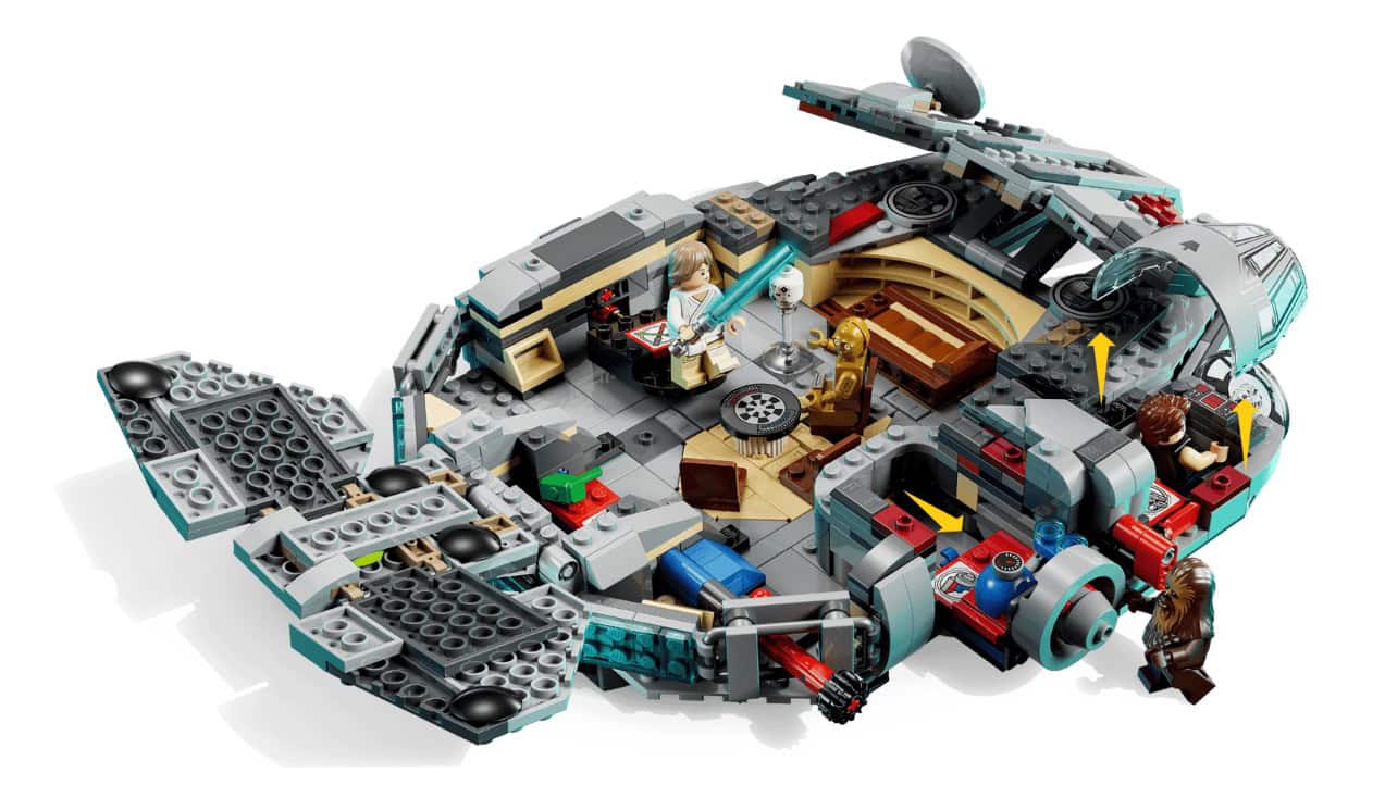 - BUILT FOR PLAY – Activate the 2 stud shooters, fold out/remove the top panels for easy, imaginative play inside the starship, play holochess, practice Lightsaber™ skills with Luke, and more
