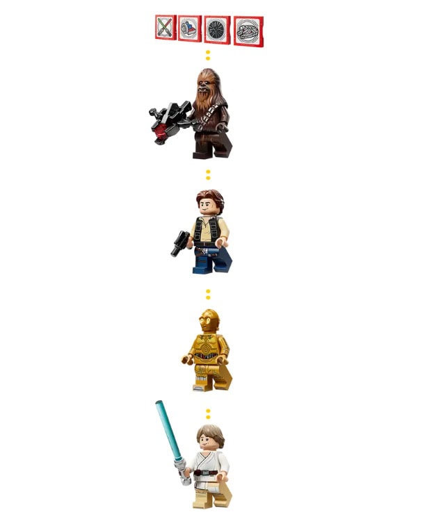 - 4 LEGO® STAR WARS™ MINIFIGURES – Role-play Star Wars: A New Hope™ scenes with SMART Han Solo, SMART Chewbacca, SMART Luke Skywalker and SMART C-3PO, plus accessories including Luke’s blue Lightsaber™