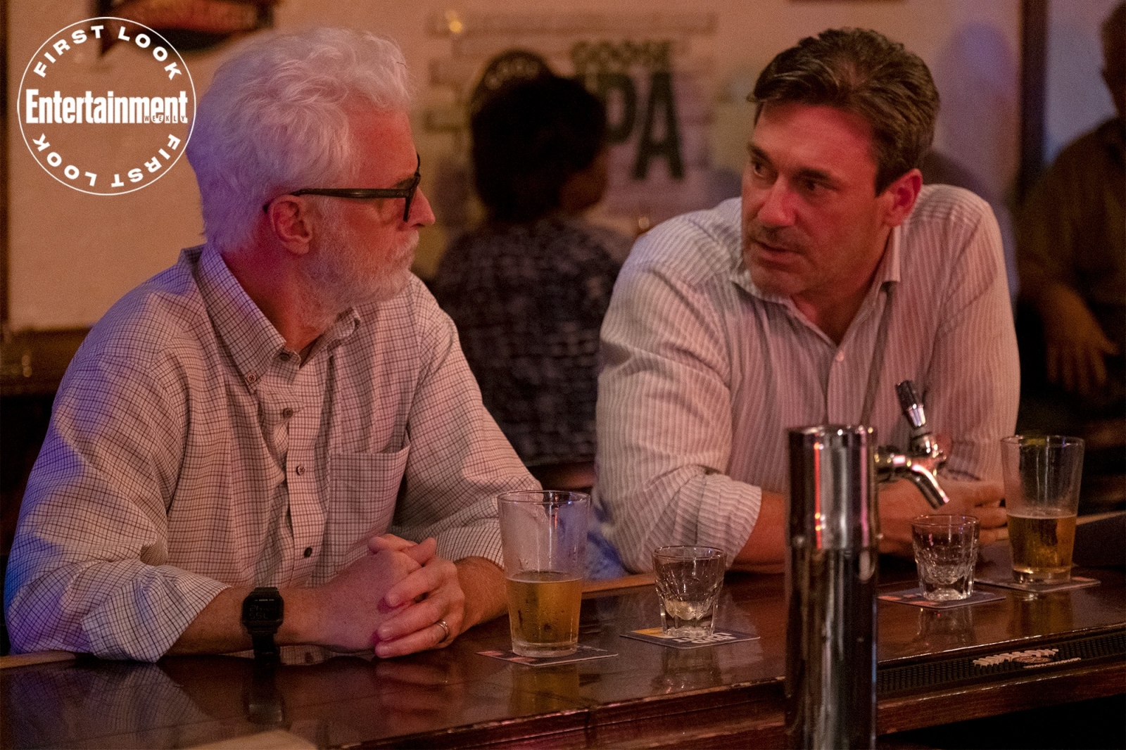 Fletch returns to the big screen this year as Jon Hamm follows in the footsteps of Chevy Chase by taking on the role of author Gregory Mcdonald’s investigative reporter Irwin M. Fletcher in Miramax’s franchise reboot Confess, Fletch, and thanks to Entertainment Weekly we have our first look at Hamm’s Fletch, alongside his co-stars John Slattery and Marcia Gay Harden.