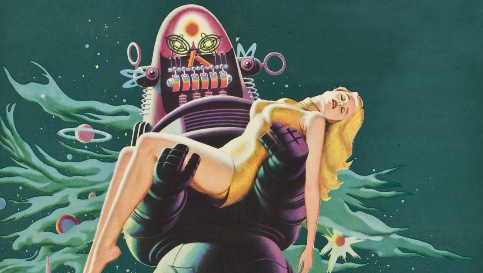Forbidden Planet follows the crew of a United Planets starship as it is sent to a remote planet to investigate the disappearance of a previous ship some twenty years earlier. Directed by Nicholas Nayfack, the cast included Walter Pidgeon, Anne Francis, and a pre-c0medic Leslie Nielsen, as well as the iconic Robby the Robot. It is considered a landmark in science-fiction cinema, and has been widely referenced across popular culture.