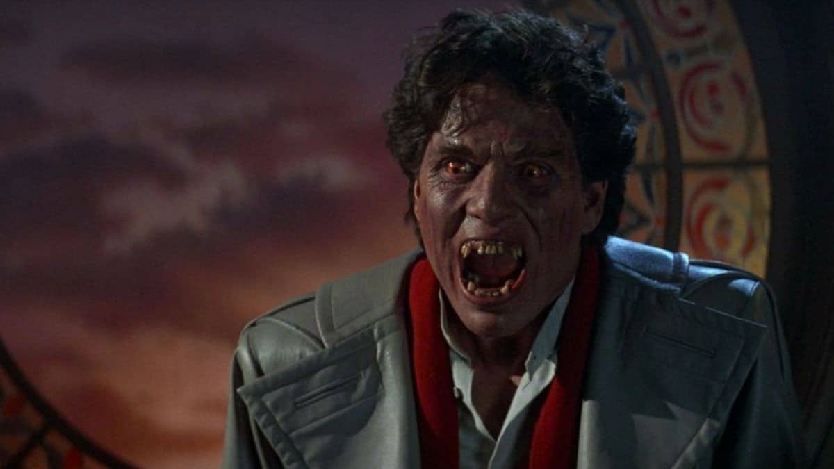 Fright Night still remains an essential film for vampire horror fans. The film certainly has a whimsical nature as young Charlie Brewster (William Ragsdale), dating Amy Paterson (played by Amanda Bearse who looks more like his mum than a high school girlfriend, in part down to fashion) is aided by his comical friend, Evil Ed, in trying to out his new neighbour as a vampire. Said Vampire is played with rakish charisma by Chris Sarandon. Brewster, a fan of all things horrific and macabre is also a fan of a long running TV show about a vampire hunter played by Roddy McDowell. When it becomes apparent that his neighbour is definitely a bloodsucker, Brewster tries to get Peter Vincent (McDowell) to help him take on Jerry Dandridge.