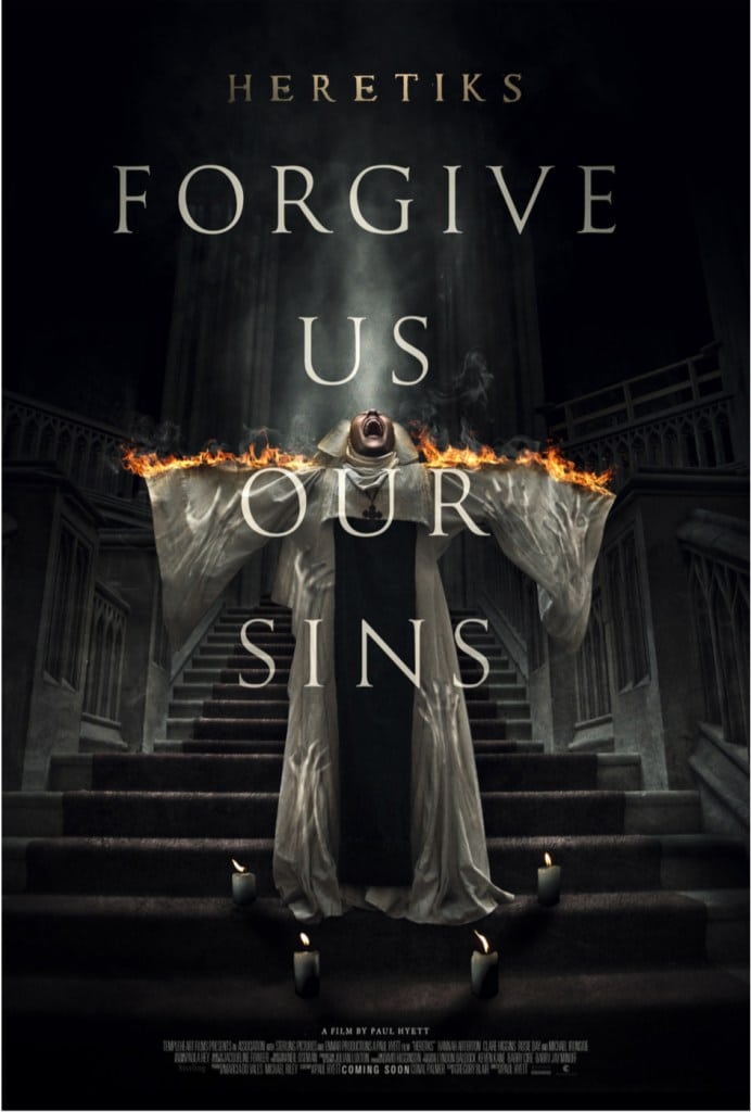 Ahead of its world premiere at London FrightFest later this month, a poster and trailer have arrived online for director Paul Hyett’s (The Seasoning House, Howl) upcoming supernatural horror Heretiks which stars Hannah Arterton, Clare Higgins, Michael Ironside, Rosie Day, and Ania Marson; check them out below…