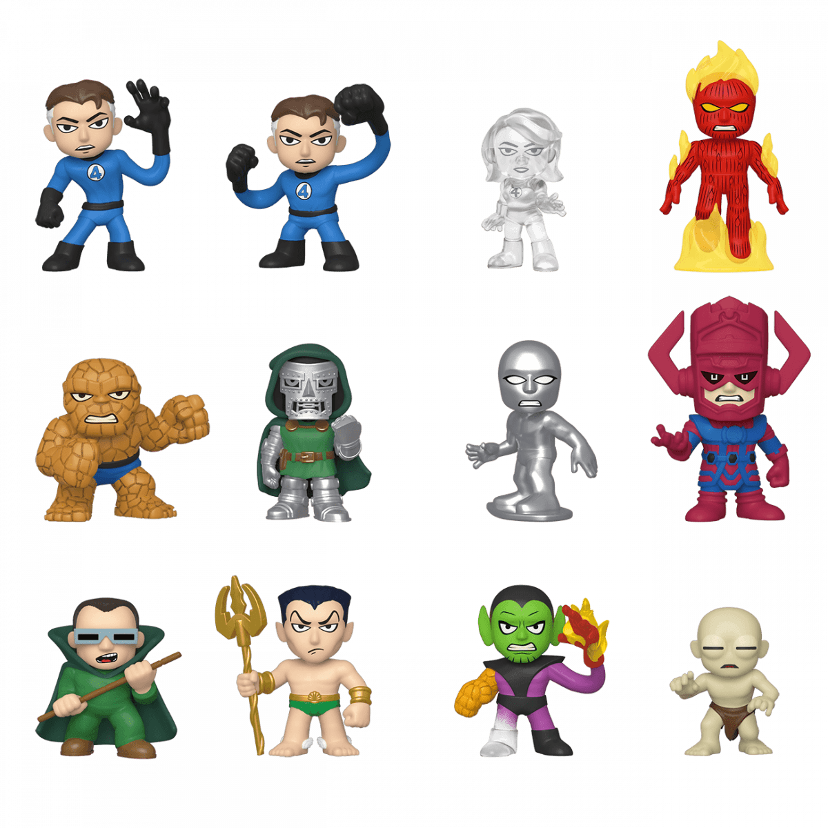 Bring a touch of the fantastic to your collection with a Mystery Mini series including Mister Fantastic, a stretched version of Mister Fantastic, Invisible Woman, Human Torch, Thing, Doctor Doom, Silver Surfer, Galactus, Mole Man, Namor, Super-Skrull and Terrax.