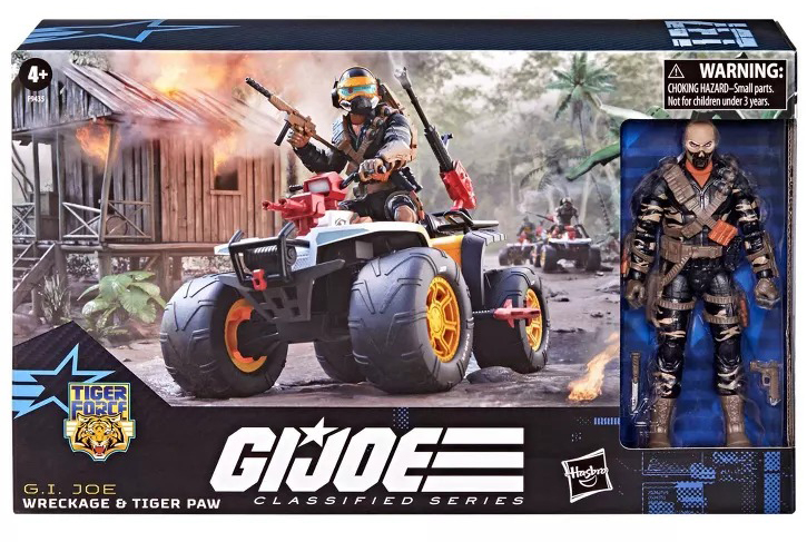 New to the G.I. JOE Classified Series line, Tiger Force Wreckage & Tiger Paw ATV figure is #137 in the Classified Series sequence and comes ready for adventure, featuring exceptional detailing and multiple points of articulation for cool poseability. This Wreckage figure contains 10 accessory pieces inspired by the character’s rich history, including a helmet, backpack, 2 landmines, remote detonator, knife, and weapon accessories. The ATV comes with 14 unassembled pieces, including handlebars, rear rail bar, winch detail, adjustable cannon, and 2 missiles accessories. The collectible windowed packaging showcases the figure along with accessory loadout, figure-specific File Card Icons, gorgeous original character artwork, and dynamic digital renders.