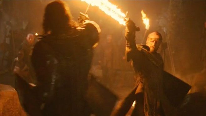 Beric is particularly notable for the flaming that he wields, a weapon put to great use this past week. One would think this was pulled off with a little CGI but Richard Dormer (Beric) has revealed that those flames are very real.