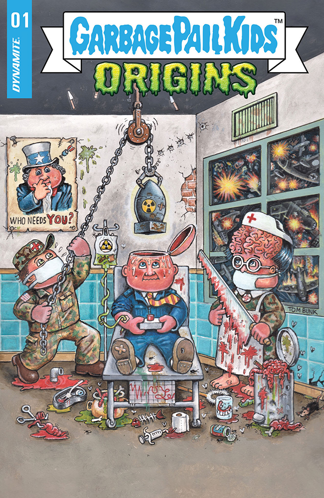 The insane minds of Adam F. Goldberg, Hans Rodionoff and Jeff Zapata have joined forces to bring you the Garbage Pail Kids as you’ve never seen them before. Dynamite Entertainment and this incredible trio of creators proudly presents give you…Garbage Pail Kids: Origins!