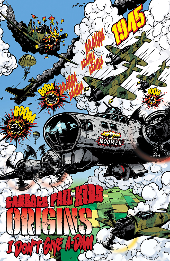 This all-new GPK comic book event is a bad-ass, sprawling, superhero epic; we not only learn how our GPK heroes came to be…but we also reveal to the world that Adam Bomb and his gang of good guys were instrumental in the outcome of World War II and the fate of humanity!