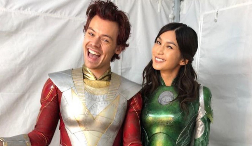 To mark the film’s arrival on Disney+ this week, Eternals star Gemma Chan has taken to social media to share some behind-the-scenes images from Marvel’s cosmic superhero adventure, which include a shot of her alongside co-star Richard Madden (Ikaris) as well as a couple of photos featuring Harry Styles in full costume for his post-credits cameo as Eros, a.k.a. Starfox.