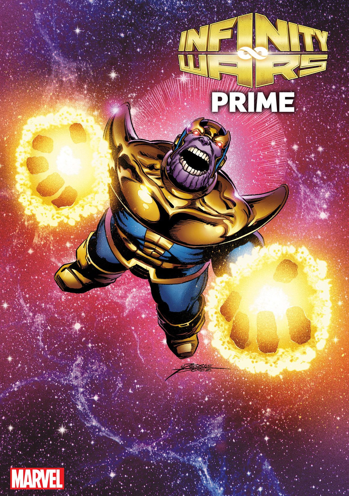 Marvel Comics has unveiled a George Perez variant cover for the upcoming first issue of Gerry Duggan and Mike Deodato Jr.’s cosmic adventure Infinity Wars Prime, featuring the Mad Titan himself Thanos. Check it out here…