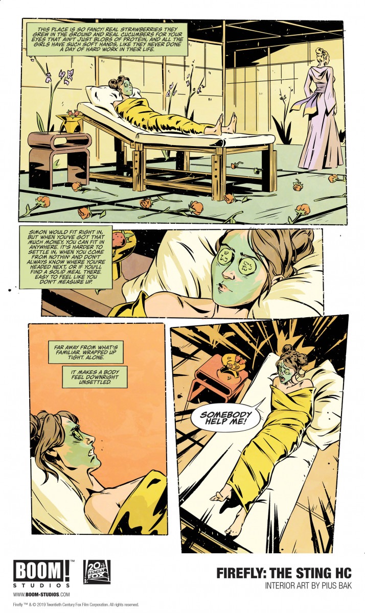 Saffron and the women of Serenity are teaming up to pull off a daring space heist this November with the release of the original graphic novel Firefly: The Sting, and you can check out a first look preview here courtesy of Bo0m! Studios…
