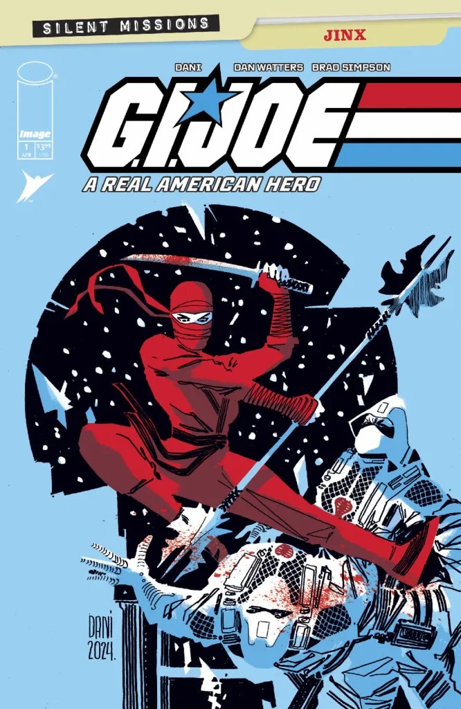 In this standalone issue, DANI and Dan Watters put the iconic G.I. Joe ninja Jinx in the most dangerous mission of her life. She has 20 seconds – and 20 pages of real-time action – to escape a Cobra base on snowy mountain of death.