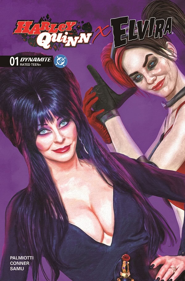 Written by AMANDA CONNER and JIMMY PALMIOTTI – the world-famous tag-team of all things Harley Quinn – this crossover event for the ages from Dynamite and DC Comics also showcases Amanda’s fan-favorite artistic chops, with each issue featuring two (count ’em, two) Conner covers. And that’s not all (certainly not!) – she’s also joining interior artist (and Elvira favorite) JUAN SAMU to provide selected story pages for the series!