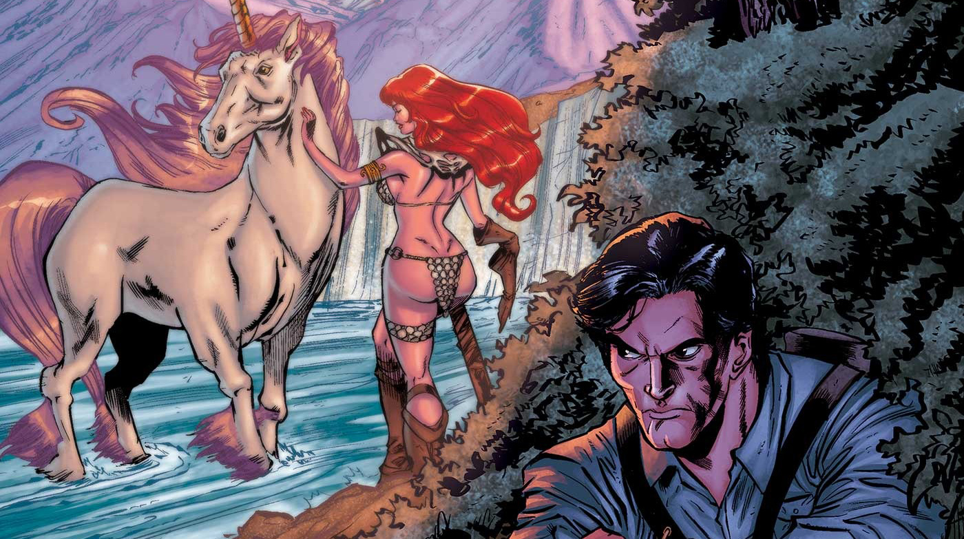 Now that they’re stuck with each other and facing off against both a Deadite horde and Kulan Gath, Sonja and Ash form an uneasy… alliance? Yeah, let’s go with that. But can the She-Devil with a Sword and the hapless hero with a boomstick cooperate long enough to stop this fresh influx of evil into the Hyborian Age? And more important – is that… a Deadite unicorn?!?